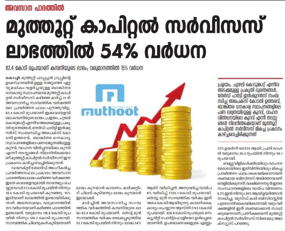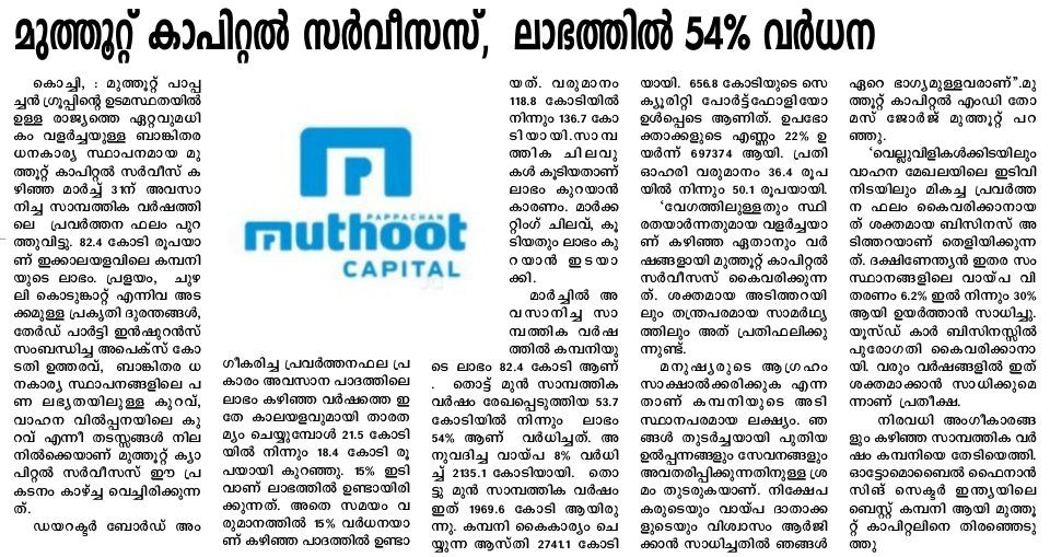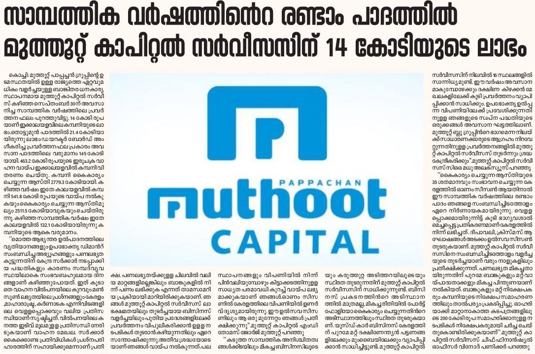 Stable results from Muthoot Capital Services; net profit of 14 crore