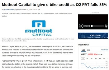 Muthoot Capital to give e-bike credit as Q2 PAT falls 35%