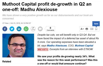 Muthoot Capital Services Ltd, Muthoot Blue, results for Quarter ended March 2019 | ET NOW