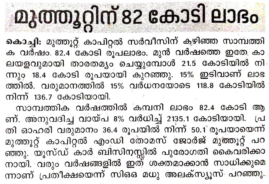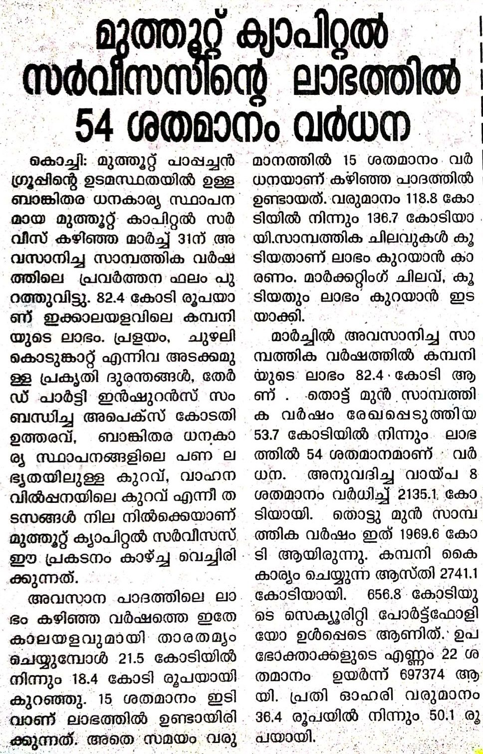 Stable results from Muthoot Capital Services; net profit of 14 crore